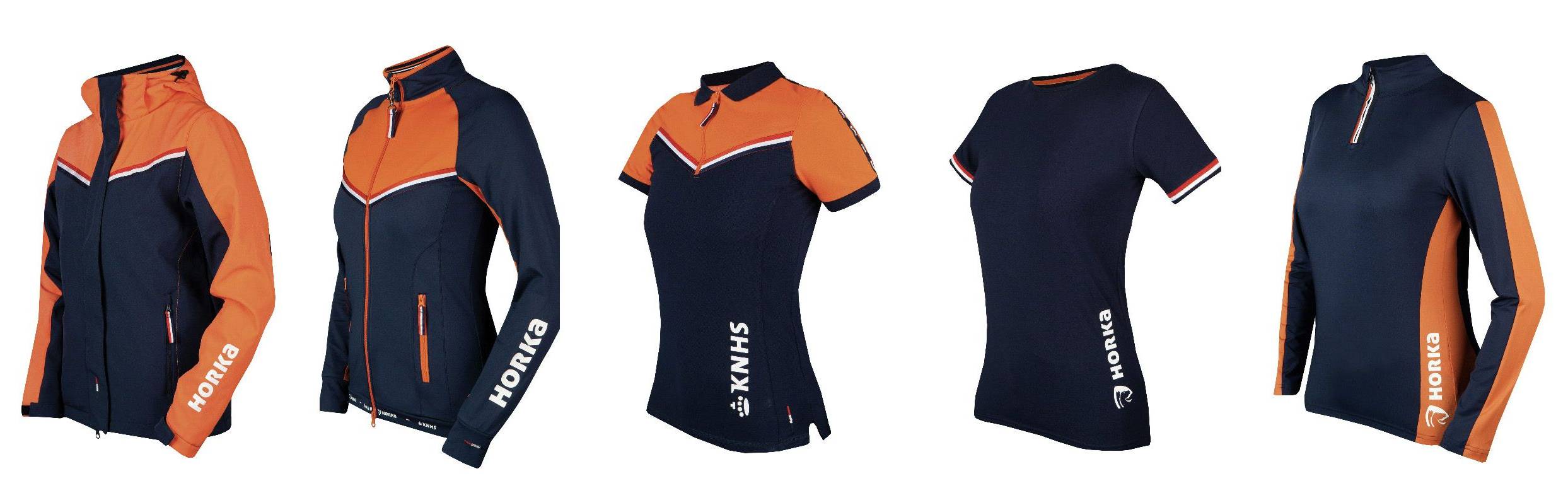 De items uit de nieuwe collectie KNHS team- en fankleding.